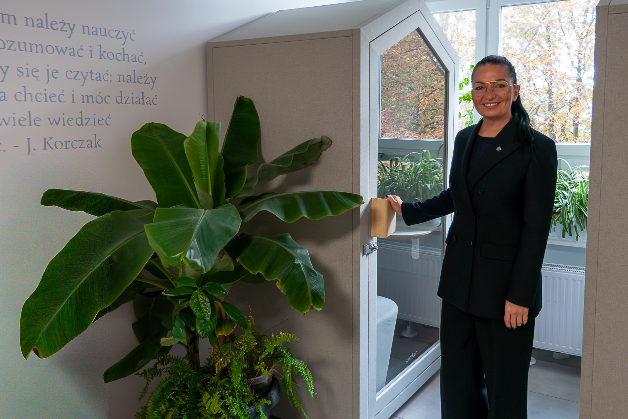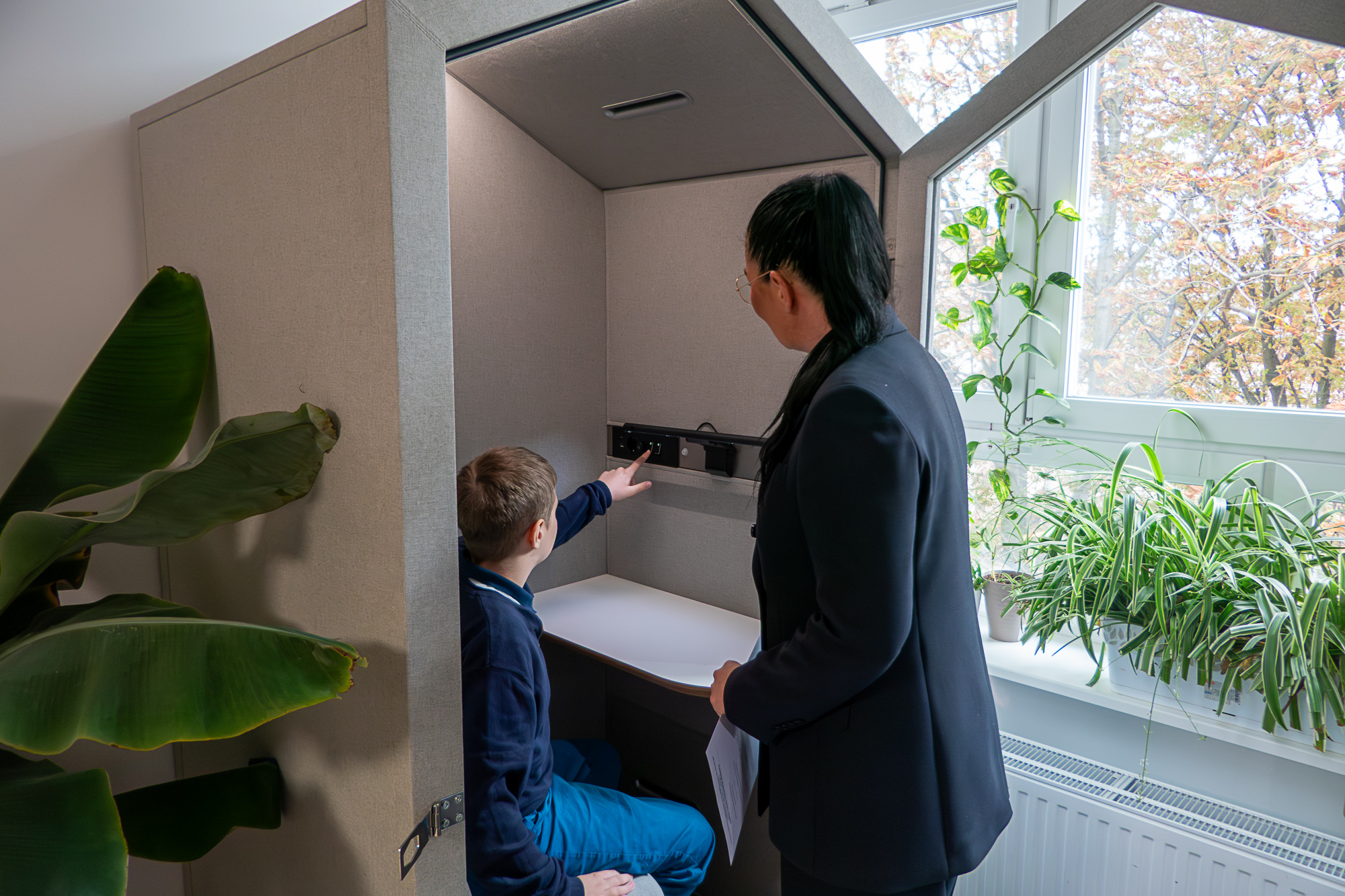 Kabina stworzy bezpieczną przestrzeń dla dzieci wymagających specjalistycznego wsparcia w zakresie zdrowia psychicznego. Umożliwi młodym pacjentom uczestnictwo w lekcjach online – które prowadzą równolegle z terapią – w ciszy, skupieniu i komforcie. Urządzenie łączy terapię światłem, dźwiękiem i dotykiem, wspierając proces zdrowienia.